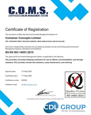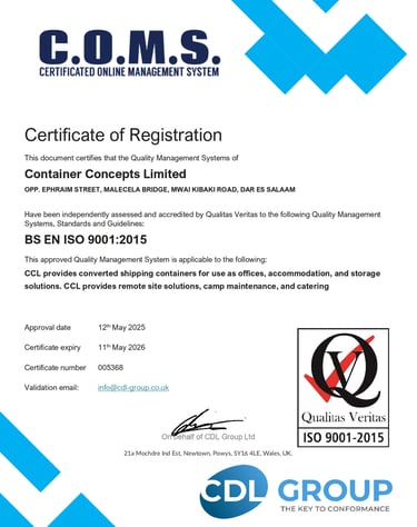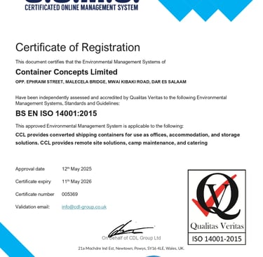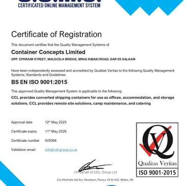 Container Concepts Limited is an ISO quality accredited fully Tanzanian registered company. We are leaders in the field of container conversions, remote camp building and site management throughout Tanzania.